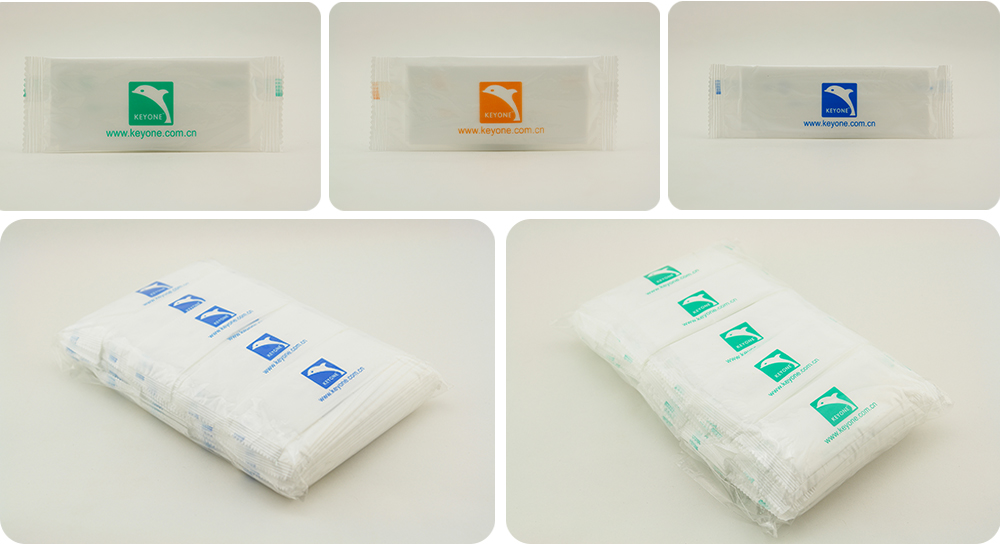 单片湿巾采用平纹和网孔水刺无纺布。