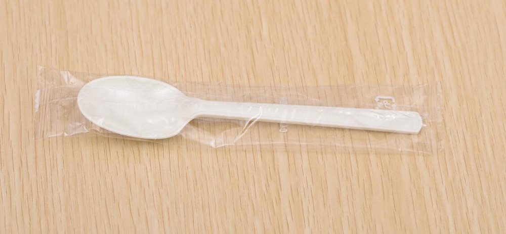 弊社の使い捨てプラスチックスプーンフォークの原料は PS(ポリスチレン樹脂)を使用し業務用向けです。